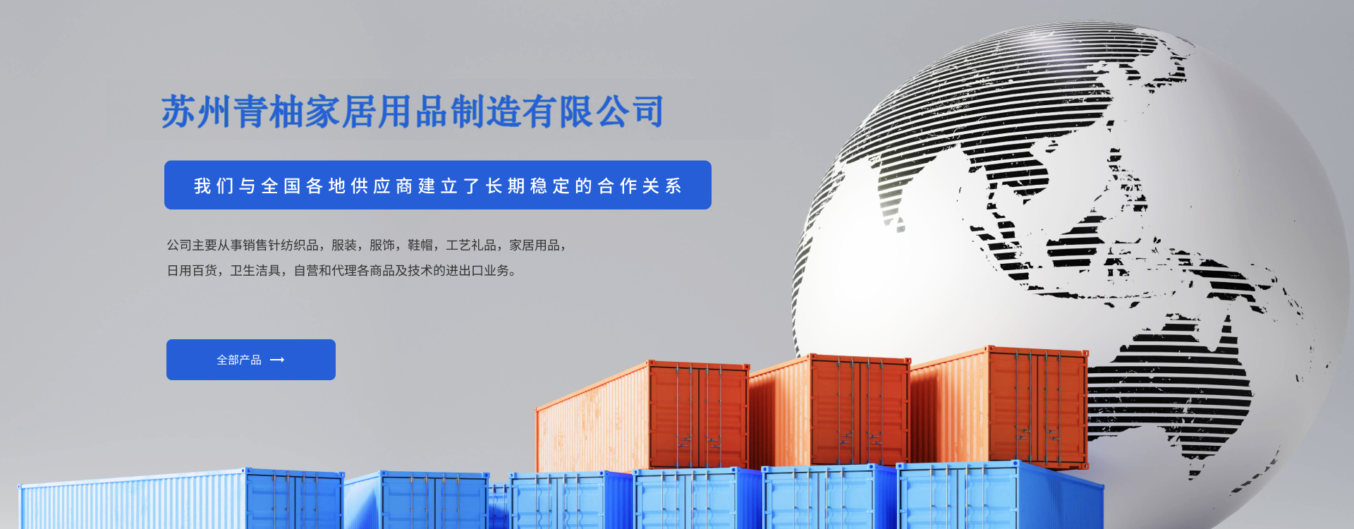 蘇州青柚家居用品制造有限公司,主要從事銷售針紡織品,服裝,服飾,鞋帽,工藝禮品,家居用品,日用百貨,衛生潔具,自營和代理各商品及技術的進出口業務。公司與全國各地供應商建立了長期穩定的合作關系。為了提供更好的品質與服務,旗下設立了倉儲,檢品,檢驗,包裝為一體的公司,確保質量的同時能夠按時交貨。